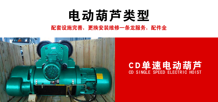 鋼絲繩電動(dòng)葫蘆是最常見的電動(dòng)葫蘆類型。它的起升電機(jī)、卷筒裝置和減速器呈串聯(lián)型布置,外觀呈圓形或方形,具有垂直升降功能。按照起升速度可分為CD單速電動(dòng)葫蘆和MD雙速電動(dòng)葫蘆兩種。