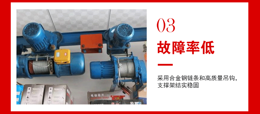 電動(dòng)葫蘆具有質(zhì)量輕、體積小、結(jié)構(gòu)緊湊、運(yùn)行平穩(wěn)、操作簡單等優(yōu)點(diǎn),可有效提升工作效率,降低勞動(dòng)強(qiáng)度。在車間、碼頭、港口、倉庫等生產(chǎn)區(qū)域得到了廣泛應(yīng)用。