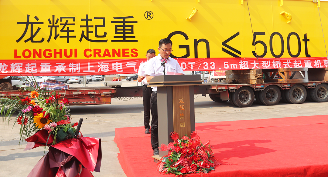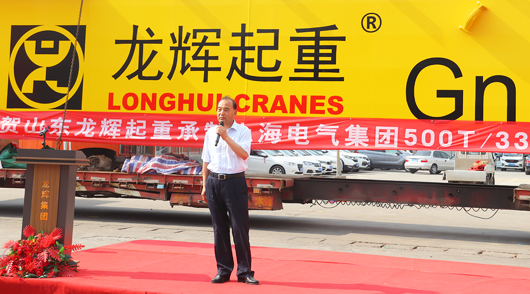 龍輝起重總經(jīng)理和輝致辭時(shí)由衷地表示,當(dāng)下,正值龍輝起重多業(yè)并舉、提速發(fā)展的嶄新階段,作為公司一次研制成功的500噸大型起重機(jī),為我們更快、更好地發(fā)展增添了一道靚麗的色彩。