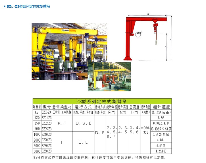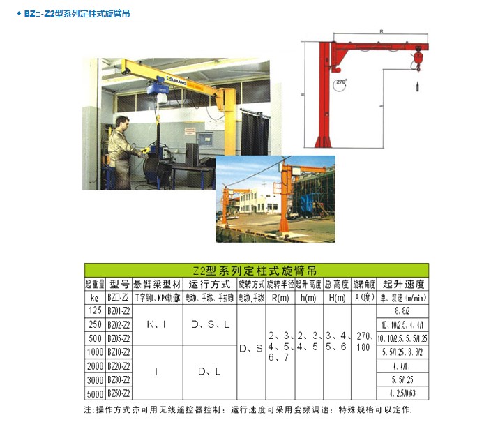 所有的規(guī)格都具有一個(gè)共同的優(yōu)點(diǎn):自重輕,懸臂長,起重量大,安裝、操作、維修簡單。它們完全獨(dú)立,是一種理想的工作崗位起重機(jī),并適用于室外的貨場和裝卸平臺。